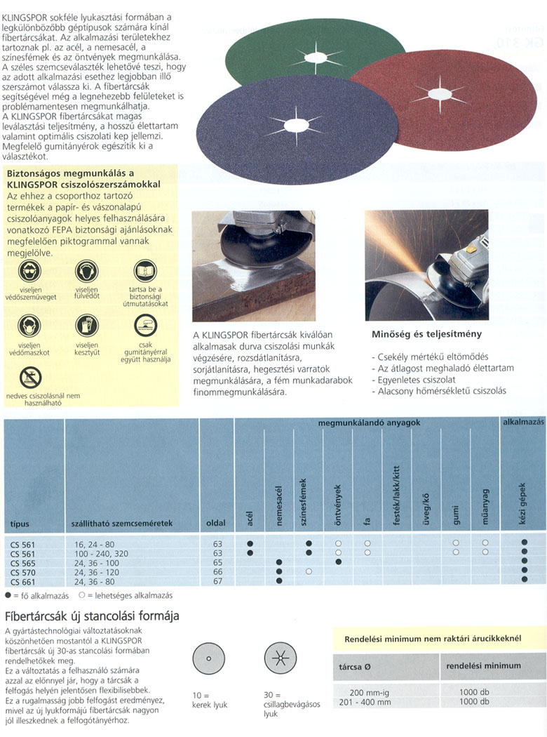 Lamelláskorongok és fíbertárcsák