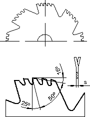 Főként úgynevezett gérvágó körfűrészgépekbe, kereszt és ferde irányú pontos méretre vágáshoz kézi előtolással. A negatív homlokszög biztosítja a körfűrész folyamatos haladását a vágásba. | ||||